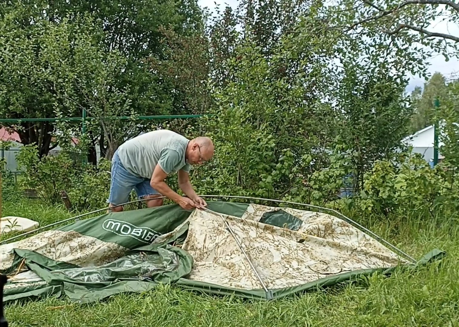 У каждого свой способ сборки палаток. По задумке производителя петля с клевантом соединяют в центре две дуги. Ерхов в них продевает дуги. У меня свой способ сборки, сначало одну дугу зацеплю полностью, потом продеваю вторую и креплю. Для примера сборка КГ.