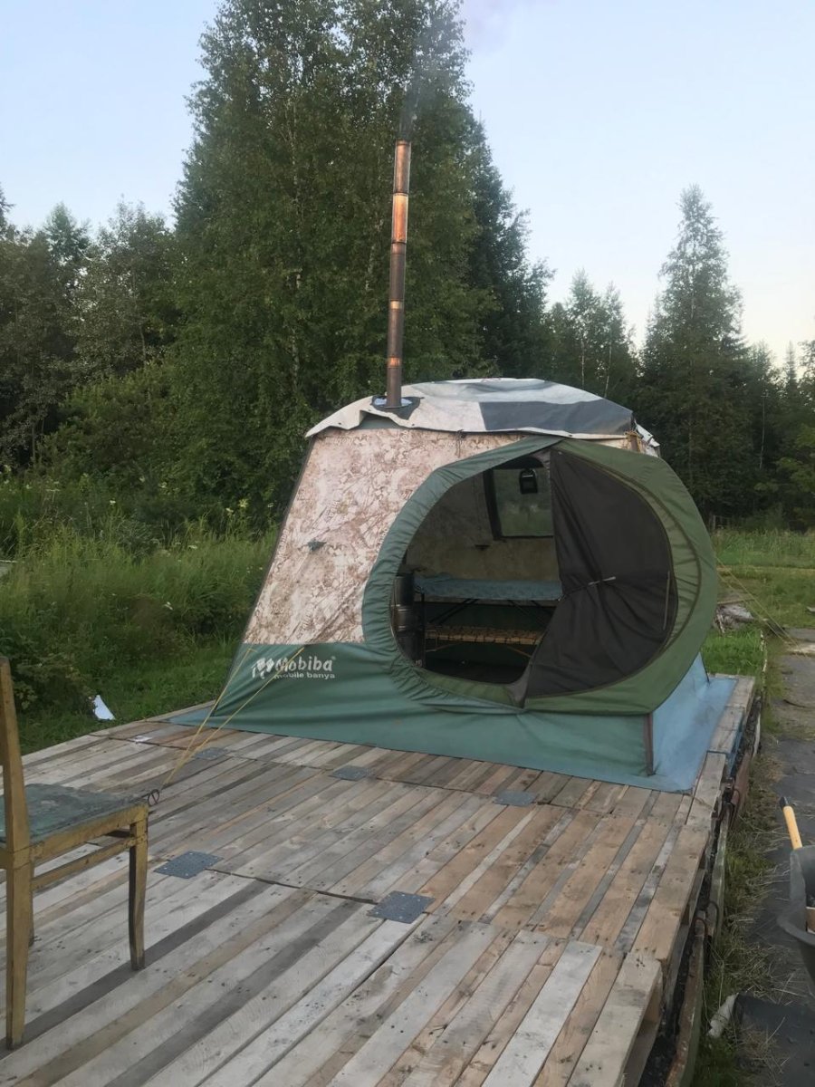 Ну а так же, мобибак, провода, куча шлангов и 1 палатка Мобиба, пара палаток самокрутяшек под туалет, душ... и еще место осталось.