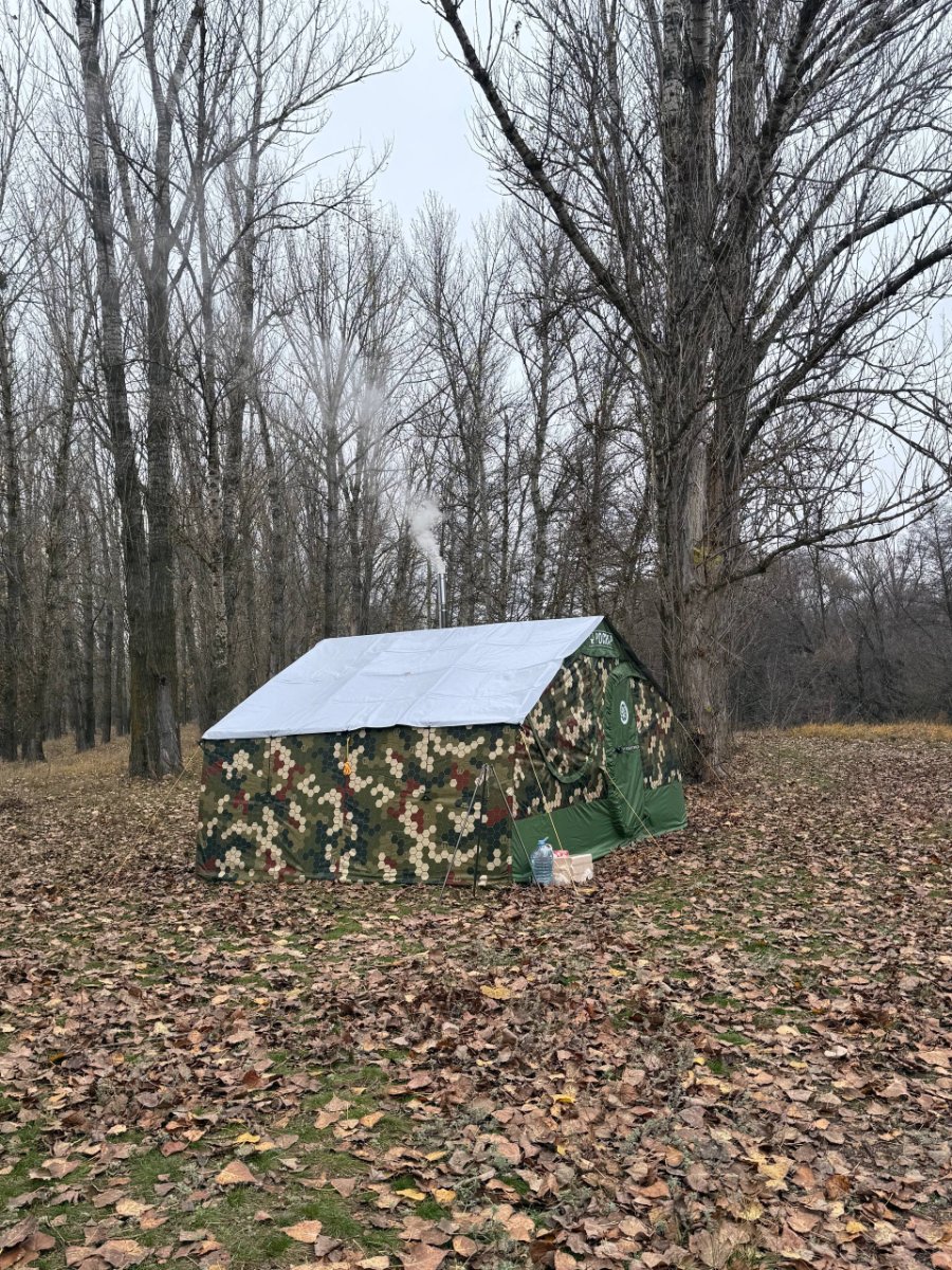 Всём привет. На крещение ставил р34 и мб22. 34 всегда ставили вдвоём с женой, в этот раз пришлось ставить одному. Первый раз попробовал ставить сначала внешний слой, а затем внутренний. Получилось очень быстро, из за того что получается поправлять изнутри, натянул его минут за 5-7. Очень ещё помогает центральная штанга которой очень удобно поправлять в самых верхних точках. Берёшь её вместо шесть и расправляешь если не дотягиваешся. Внутренний слой спокойно с дальней стороны палатки начинаешь пристегивать и все получается замечательно. Изн удобно одному натягивать так, привязываешь пару верёвок за кольца изн, перекидываешь через палатку и тянешь. Главное расправить его, на морозе жёсткий и если хорошо не расправить, складками цепляется и плохо идёт. Поставил весь лагерь один примерно минут за 30. Когда приехали жена и друзья, уже в палатках было в одной тепло, а в другой ад. Паробомба как всегда дала жару. Три раза парились и ныряли в прорубь и хорошо посидели. 7 часов пролетели незаметно.