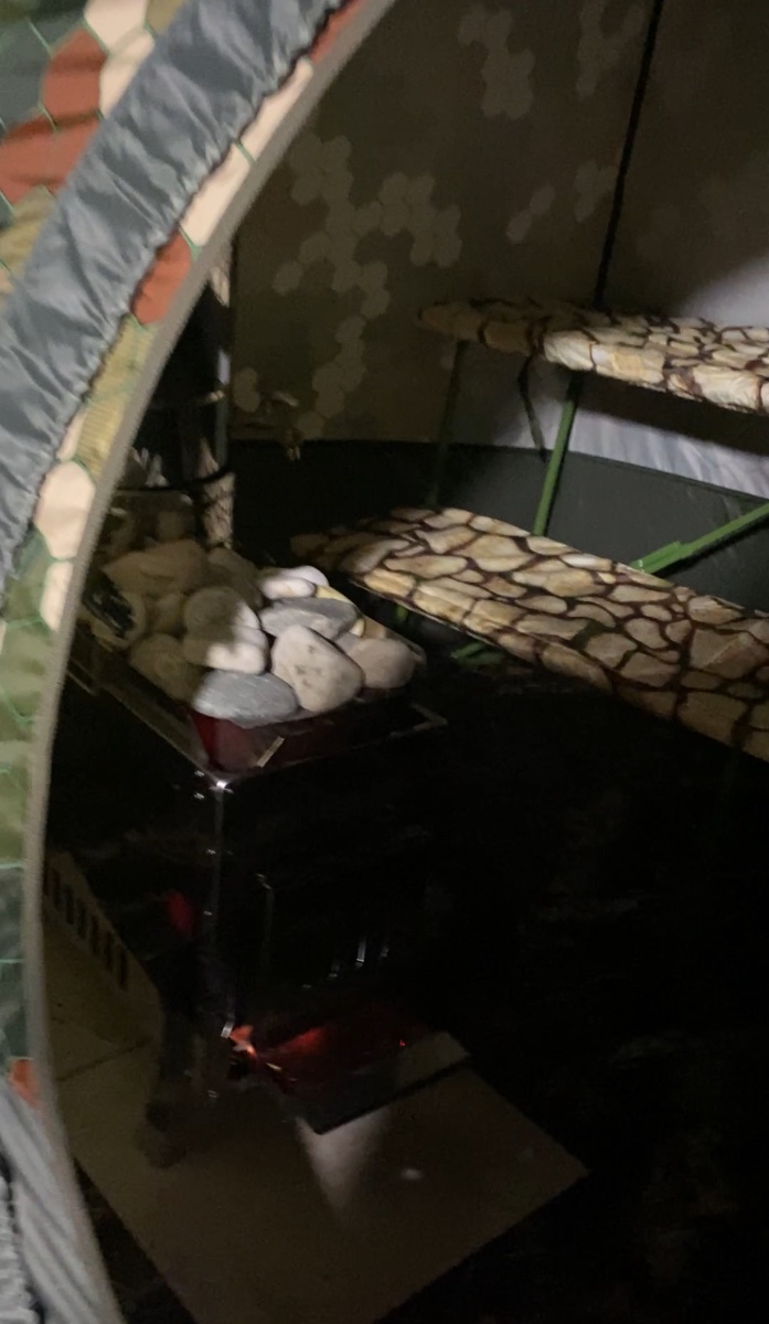 Вдвоём, больше месяца в пути, баня-как в нашей молодости, из камней.