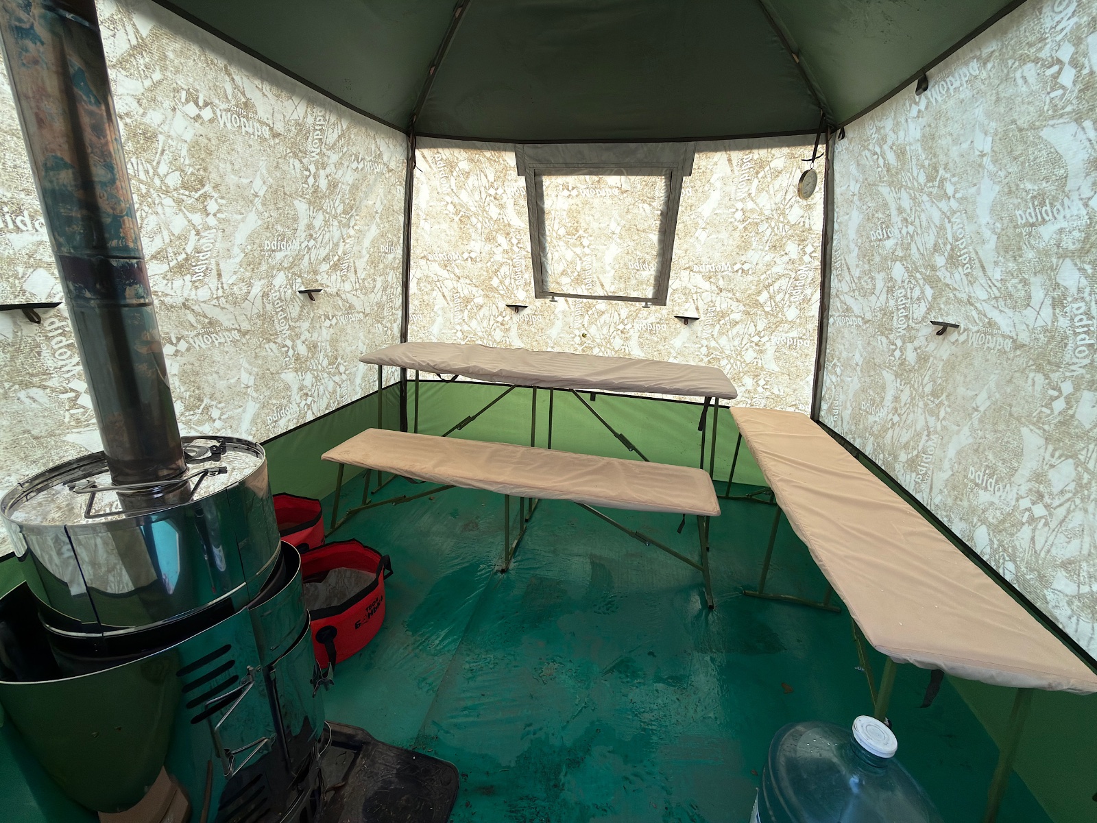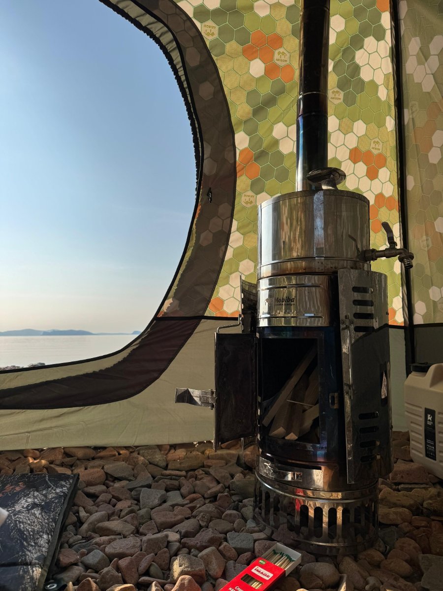Затопил Согру в комнате, температура +15 поддерживаемой конвектором, довольно скоро полезла вниз. Притащил воды в МБ-15, разжег, пошел пить чай.