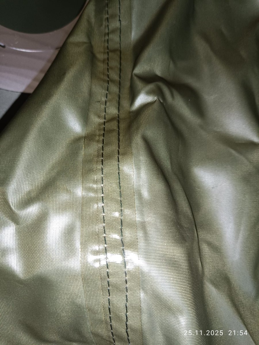 И я вполне допускаю, что изменившийся крой МБ-18/22 просто не позволяет подобраться с тейп машинкой к швам и проклеить их. А вот на накидном тенте уже таких проблем нет, и там все проварено.