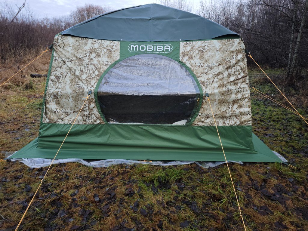 Накидной тент позволяет использовать Вашу палатку Мобиба МБ-18/22 круглый год