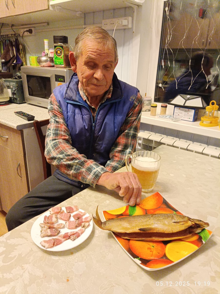 Еду мне собирали жена и тёща, а папе мама, так что честно скажу, с омулем сфотографировались, но до него руки не дошли. Папа сейчас уходил к себе, я ему сказал, что завтра, после бани, на ужин омуль. :lol: