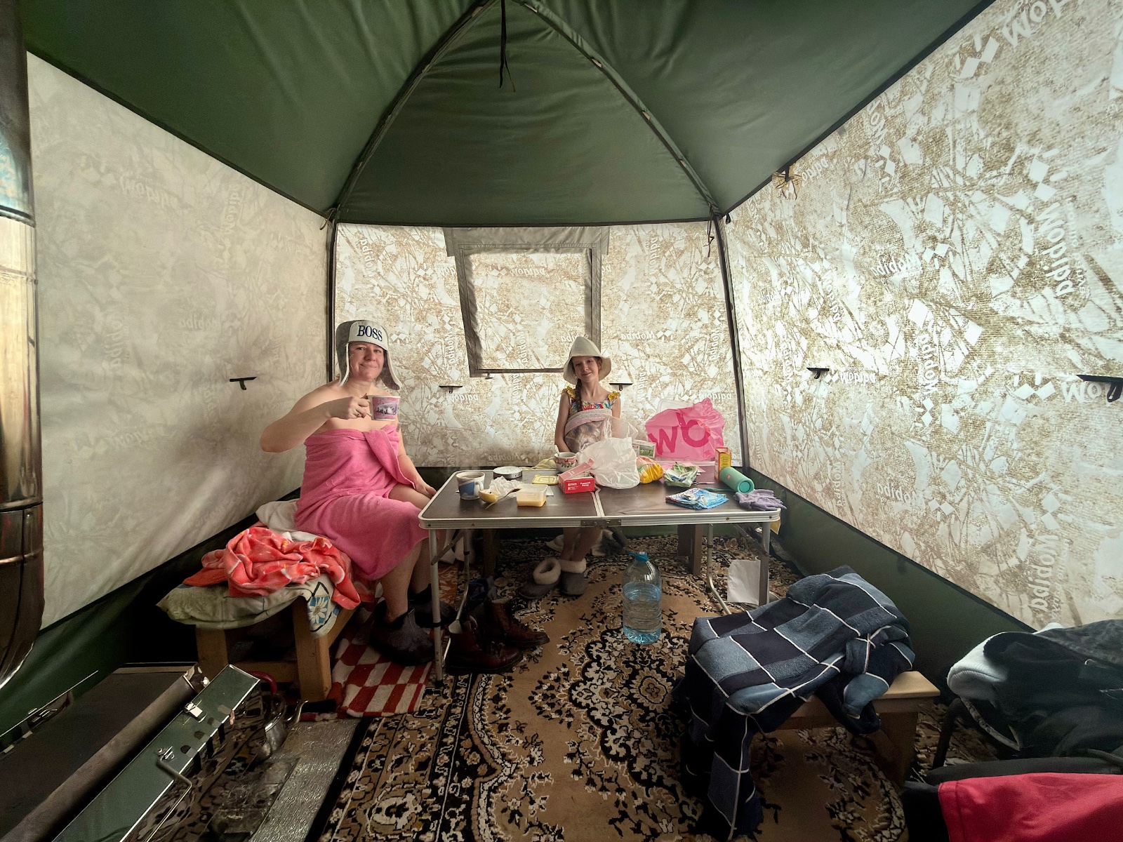 У меня же стоит внутри холодной летней веранды- МБ-15 с Согрой, как раздевалка и чайный домик. На бетонном полу внутри палатки фольгированный пенофол 10мм и поверх какой то старый ковер. Даже в -25 разогревается очень быстро, буквально минут 20. Всю зиму пользуюсь, дважды в неделю).