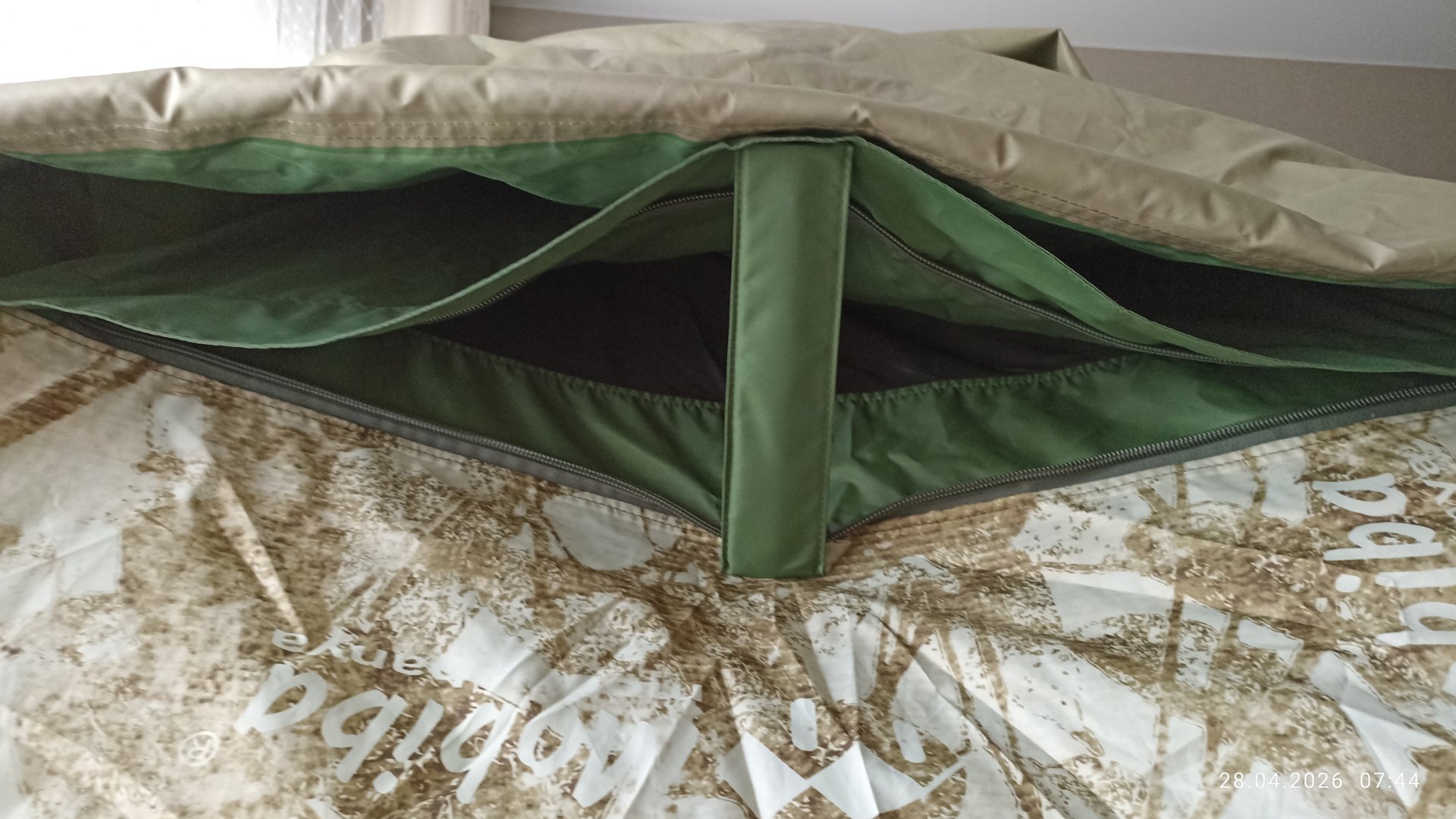 С дверью возникла непонятка. Накидная дверь больше размером и проем тоже, натяжения каркаса не хватает перекрыть его, по бокам образуются приличные щели. А если натянуть передние оттяжки, то они прям видны.