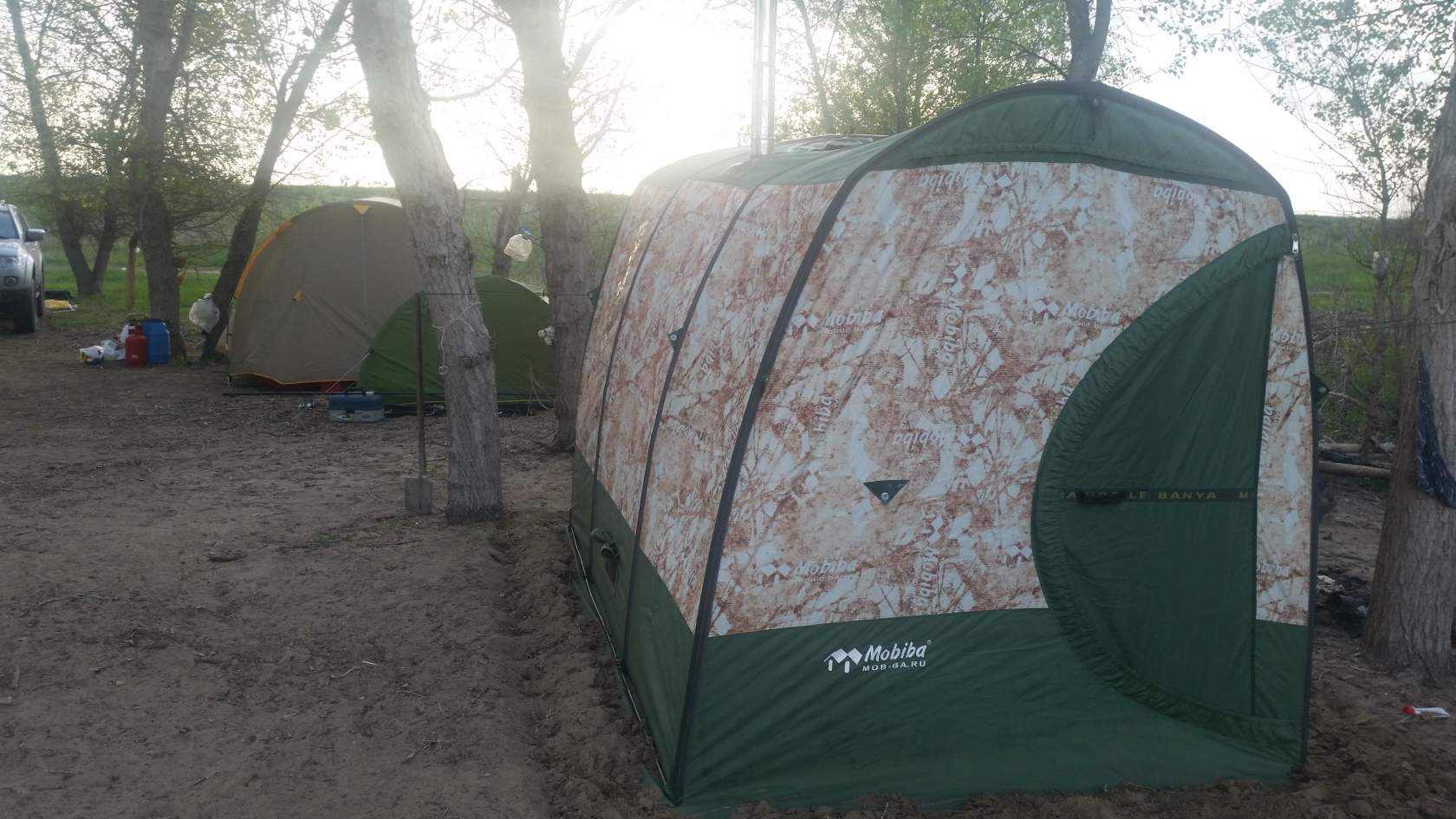 Установили прям на берегу реки. Соседи подходили интересовались, что за чудная палатка.