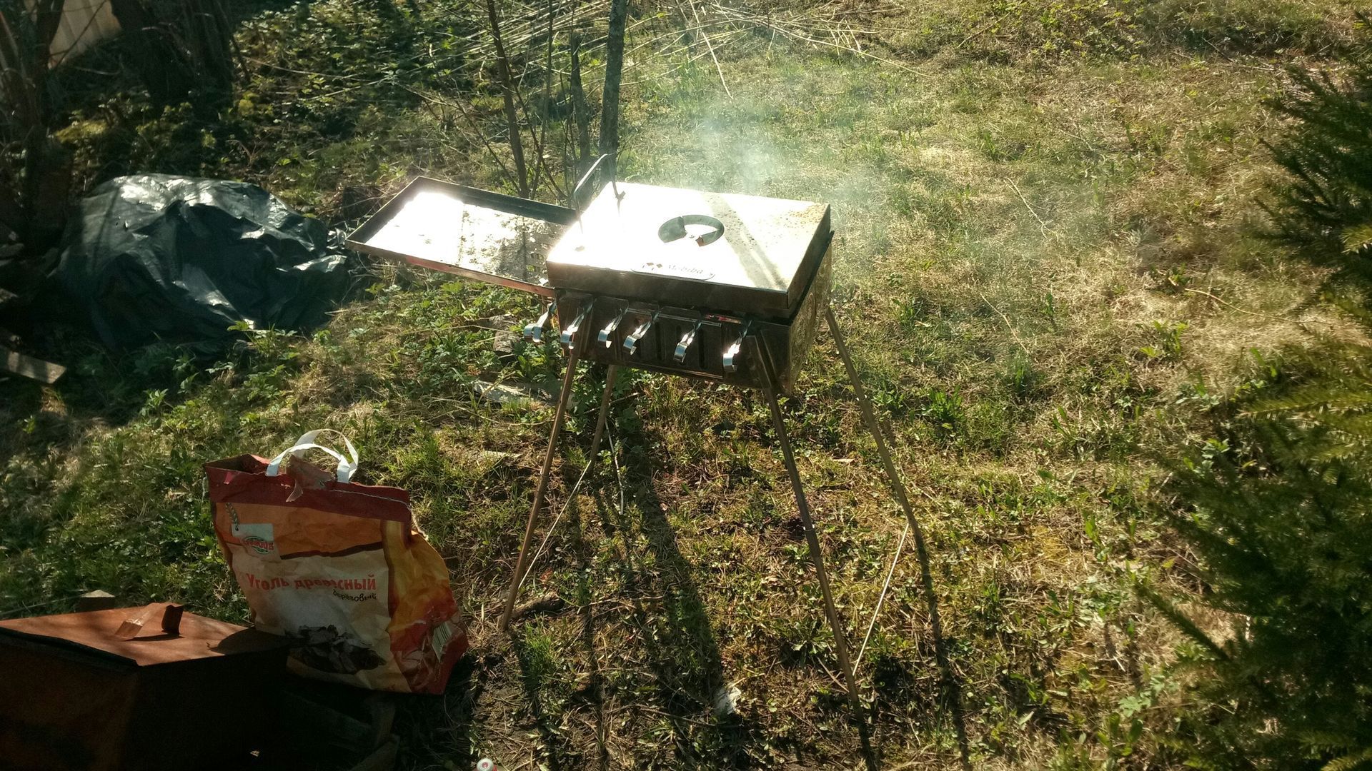 Заехал в гипермаркет и прямо за магазином все и зажарил)))