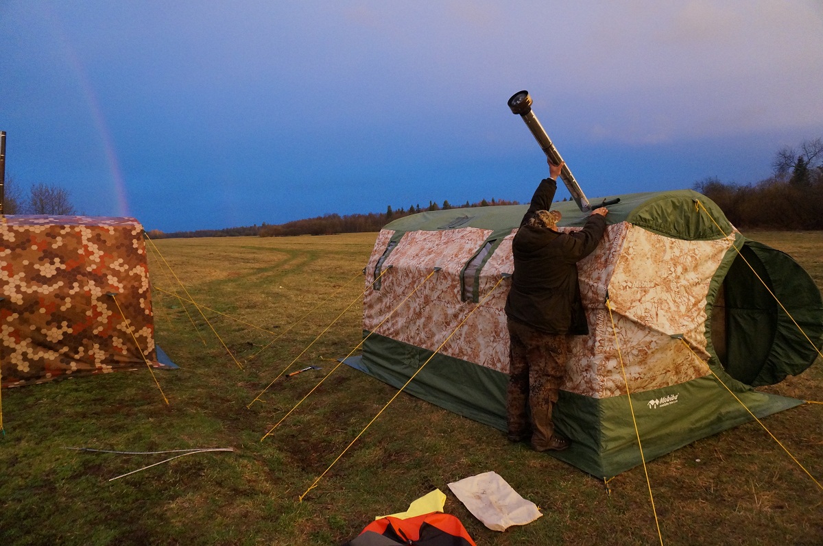 Как сладко спится в 104ой на берегу реки холодным весенним утром, я рассказывать не буду. Потому что придется рассказать, как Палыч в поисках тёплой жены во сне перекочевал со своей стороны кровати на мою, отобрал у меня спальник, укрыл меня тёплым полом и бубнил мне в ухо: "Спи, спи, дверь сама закроется". В процессе ночной установки МБ-104 мы как-то странно перетянули тент (?), что дверь плохо фиксировалась, и утром я проснулась от того, что пятки мне щекотал бодрящий ветерок. И еще меня очень смущал момент, что труба, как мы её не устанавливали, всё равно как-то странно гнется. То ли у нас руки кривые, то ли слишком много сегментов, то ли ветер... Шут его знает, но никаких эксцессов из-за этого не произошло.