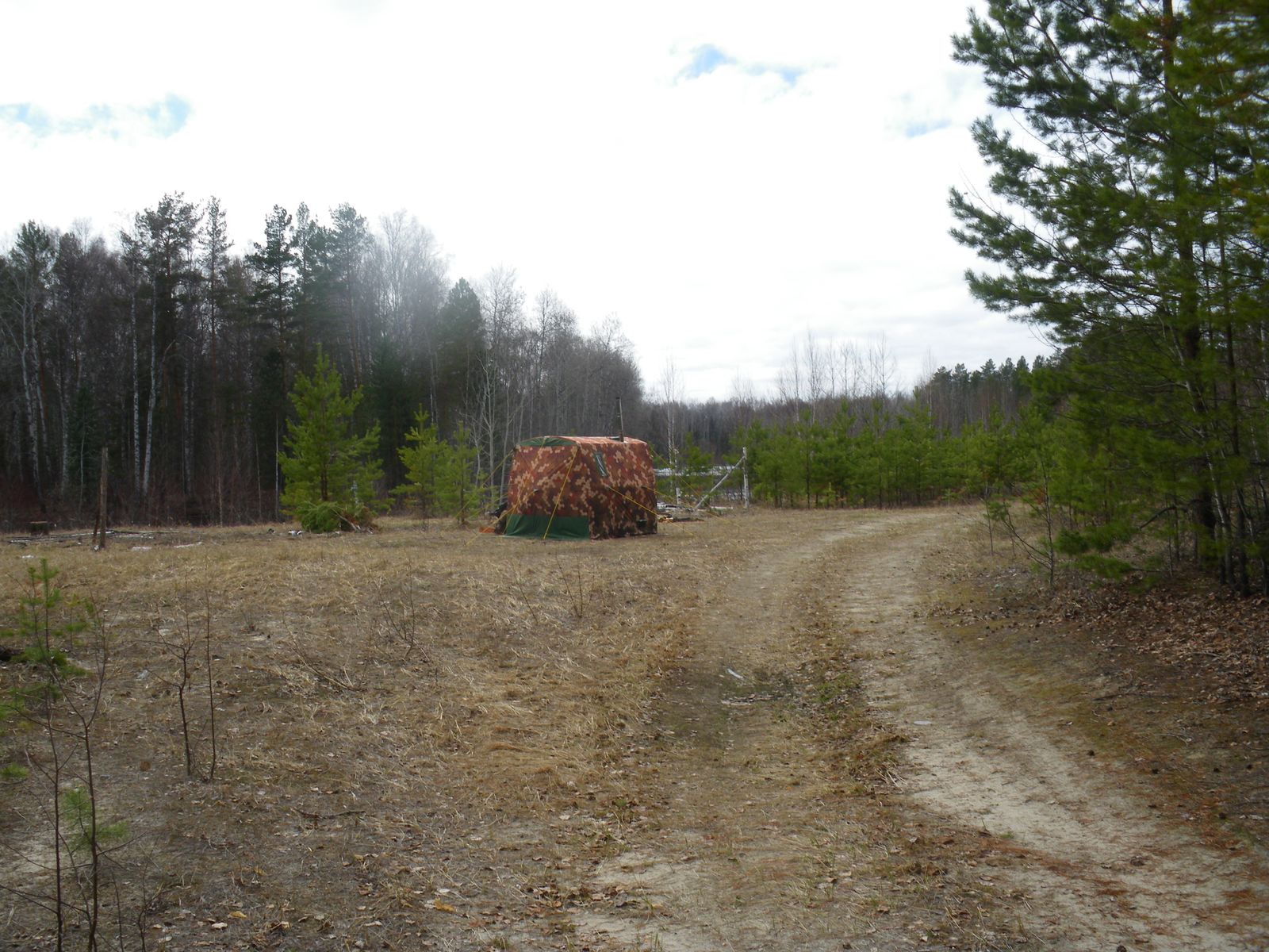 Пока мы все вместе разворачивали лагерь, а Василий с Николаем слушали мою лекцию о преимуществах «Мобибы» перед чем угодно вообще («долг каждого гвардейца – нести «Мобибу» в массы!»), Вася, не отрываясь от процесса, умудрился «приземлить» пару жирных крякашей, так что теперь и «Шикардос» обеспечен работой на вечер! (ну вот, я же говорил: «рыба будет»!) Палатка выросла как будто сама собой и совершенно органично (впрочем, как и всегда) вписалась в окружающий таёжный пейзаж. В качестве лирического отступления отмечу, что от «сотового» камуфляжа поначалу был не в восторге: больно он летний, больно зеленый. Что с таким делать в лесу зимой, а тем более – весной и осенью?! Но после пары недель, проведенной моей МБ-22 под мартовским солнцем, радикально изменил свое мнение! Впрочем, это и на фото видно! В общем, установив лагерь и выпив кофе из термоса, идем на разведку дороги и моста. Помните, я говорил, что у нас еще снег не везде сошел? Вот и вправду – не везде. Самые внимательные радиослушатели могут даже рассмотреть цепочку лисьих следов там, где стоит Василий.