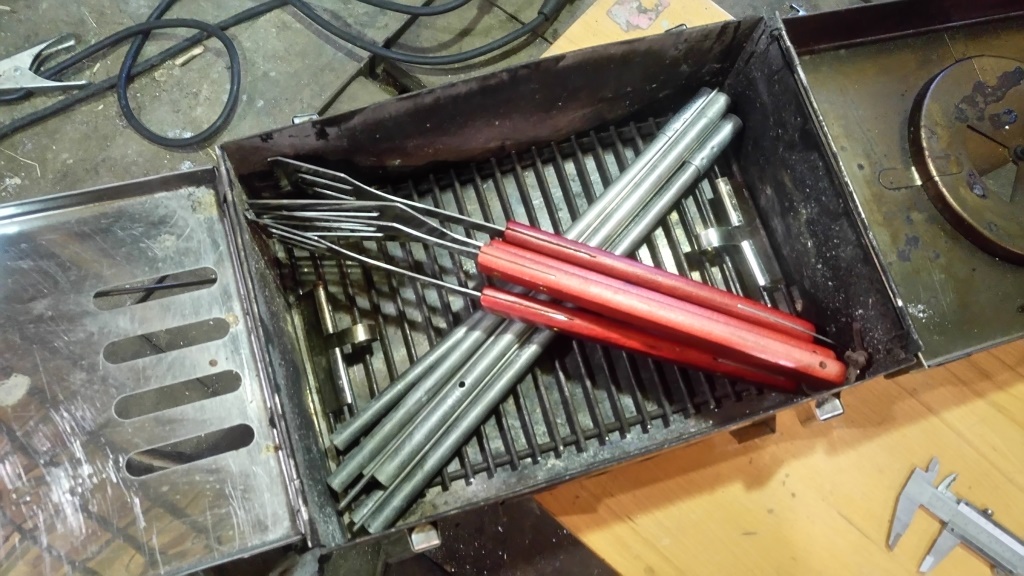 Так решетка ложится в мангал Затем укладываем ножки и китайские принадлежности.. Вопрос к Шефу. А китайцы не знают про ваш мангал? Уж больно подозрительно удачно размеры подходят)))