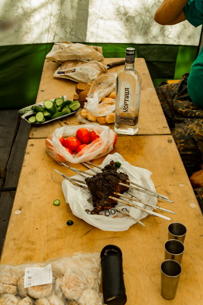 Возвращение на Шаманку решаем отметить праздником: запеченной на «Шикардосе» бобровой ляжкой и умеренным (а его очень мало, все средства вложены в топливо и подготовку машин к поездке) потреблением самопляса.
