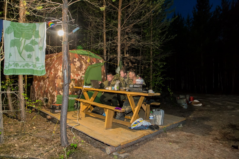 Стартовали мы в восемь утра, а в десятом часу вечера добрались до нашей постоянной перевалочной базы, бывшего вахтового поселка Жаровка (он даже на картах есть!), где нас встречает егерь Василий, штатный охотник Николай сотоварищи (в свободное от охоты время он – водитель лесовоза), и, разумеется, «губернатор Жаровки» Олежка. Помните, я рассказывал о них в своих постах про путешествие по Улу-Юлу? Здесь мы решаем заночевать. Мы, конечно же, можем «рвануть анус» и совершить финальный бросок на Шаманку (осталось всего 40 км, что равно 4 часам дороги), но накопившаяся за день усталость, а главное – то, что придется в сумерках (а у нас сейчас белые ночи, темно не бывает) и на гнусе разворачивать лагерь, обустраиваться, готовить еду и вершить еще миллион хозяйственных дел, а потом – «с места в бой» работать, нас останавливает. Нет уж, лучше завтра с утра; мы ведь помним, что «когда Аллах создавал время, он создал его достаточно». Итак, все на завтра! А сегодня – холодная баня (помыться, а не попариться), три «дежурных» стопки «самопляса» под картошку со свежесобранными белыми грибами, здоровый сон. Кстати, сосед Олега, жаровский медведь, прекрасно пережил зиму и уже несколько раз заходил к Олегу в гости, в последний раз – вчера, в виду чего Олег теперь рыбачить не ходит: до реки ходить страшно; так и сидит на картошке и грибах, которые собирает здесь же, на окраинах поселка.