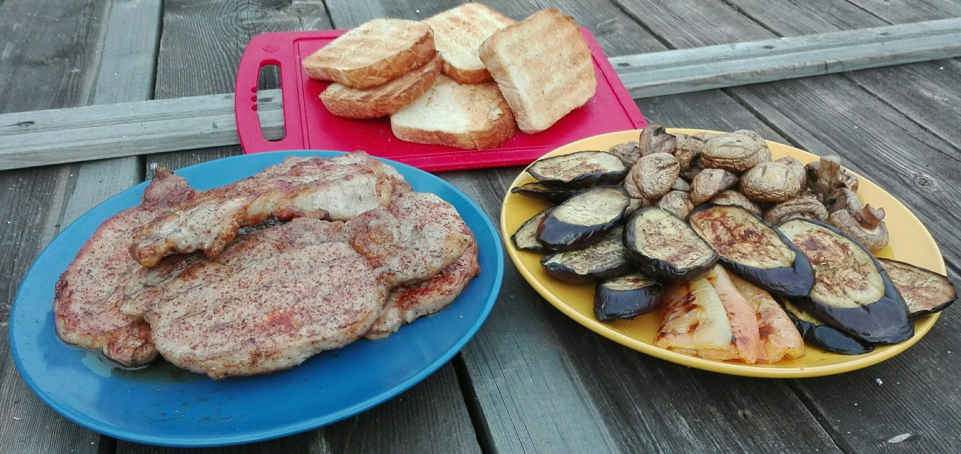 Просили баклажаны, пожалуйста. Ну и шампиньоны ещё, и перцев немного, мяско само собой. На последок хлеб подрумянить до хрустящей корочки.