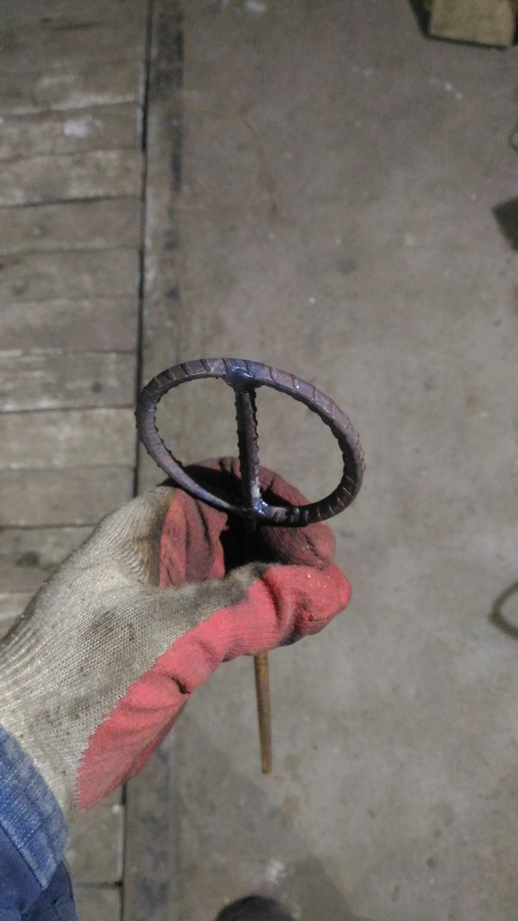 Берем целый пруток и наматываем на трубу - предварительно зажав в тисках. Ничего греть не надо. Так мы получим кольца. Потом снимаем с трубы и зажимаем в тисках, предварительно очертив линию отреза болгаркой. Затем отрезаем болгаркой и получаются такие колечки, выравниваем... Ну и собственно привариваем к прутку, получаем букву "Ф" Красим любой понравившейся краской, или какая есть в наличии Плюсы такого решения: Вырывать и забивать удобно, можно пристегивать всякое барахло, ну там растяжки и все такое )))) Если детишки или подвыпившие друзья будут шататься около бани/шатра/палатки они не распорят ногу, да будет неприятно если наступить на такое, но точно не пропорется нога. Яркая краска должна помочь колышкам быть более заметными. Материал рифленый - арматура - будет меньше скользить в тверди земной. Затачивать не стал острие, и считаю этого делать не нужно. ИМХО скругления за глаза....