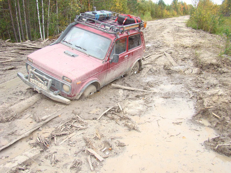 Марина на сей раз остается дома: ее «норма приключений на сентябрь» уже выполнена (а моя – нет; куда деваться?). А мне приходится думать, как же поступить. Вариант «доехать докуда можно, а дальше идти пешком и нести с собой аккумулятор, инструменты и ЗИП для ремонта» я сразу отложил на крайний случай: это, конечно, можно, но после свежих в памяти приключений с пешими прогулками как-то… не внушает энтузиазма. Значит, нужна машина. Через несколько дней туда должна заходить вахтовка с лесозаготовительной вахты, а еще через несколько – лесовозы, можно зайти с ними, но данный вариант тоже «не айс». Вся техника старая и держится на честном слове (причем – неизвестно чьем): та же самая вахтовка может идти туда сутки, может и трое, устраняя появляющиеся неисправности по ходу следования, а может и вообще вернуться с полдороги, если поломка окажется серьезной. Да и места в ней мне (тем более – с барахлом) мне тупо может не хватить. Опять же, неизвестно, когда именно она туда пойдет. Ситуация осложняется тем, что через шесть дней мне туда завозить гостей на охоту на медведя, следовательно, в запасе у меня 3-4 дня, и это – максимум. Значит, используем дивную опцию «помощь друга». Тут тоже не все радужно. Друзей, в т.ч. и на внедорожниках, у нас с Мариной много, беда в том, что далеко не всякий внедорожник туда сможет дойти. Как выясняется в ходе проведенного обзвона и ряда встреч (с демонстрацией фотографий и эмоциональными рассказами о бродах «до середины лобовика» и колеях «вам до пояса будет»), вообще ни один не сможет. Пичалька, чо!