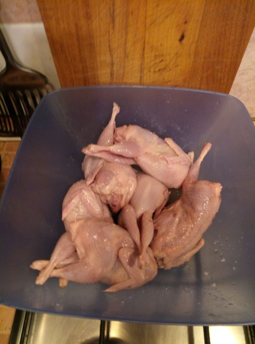 Берём перепелок, лимон, соль, перец, сметану, чеснок, разливное томское Крюгер золотое. Промываем птичек. Обтираем бумажными полотенцами.