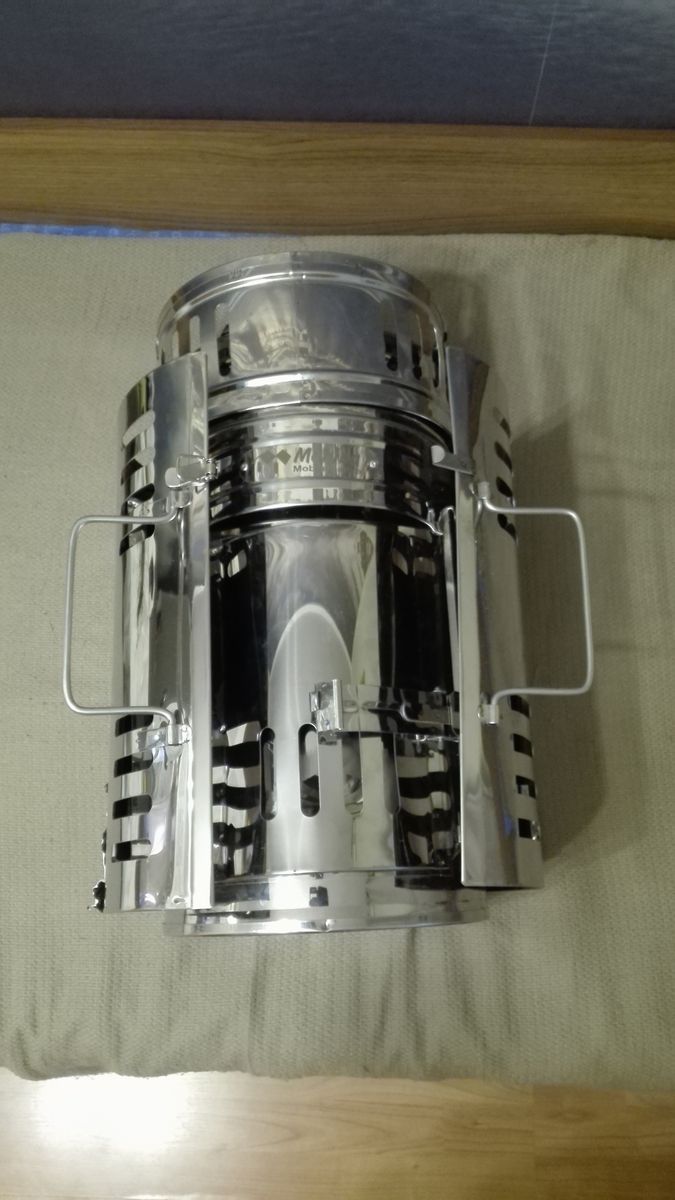 Сборка в обратном порядке тоже очень проста. Дымоход, стяжки, полка, кран, полка укладывается в бак и накрывается крышкой, потом сверху надевается топка.