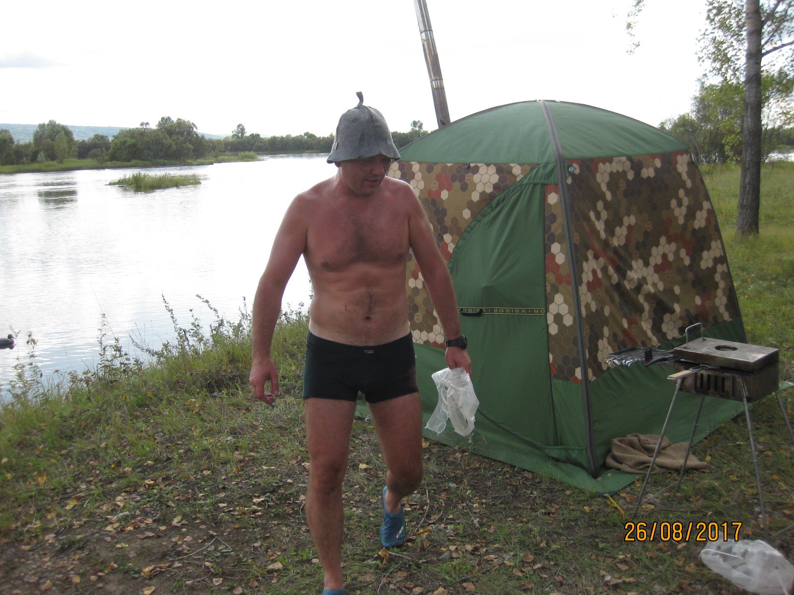В прошедшую субботу мои девчонки захотели мяса на природе. Баню не захотели, т.к. в пятницу парились у друзей. Спрашивается, зачем тогда брать 104-ю? Взяли десяточку, Согру, Шикардос и в лес. За 10 минут всё поставили, запустили Согру, пожарили мяса на Шикардосе и сидели до темноты.