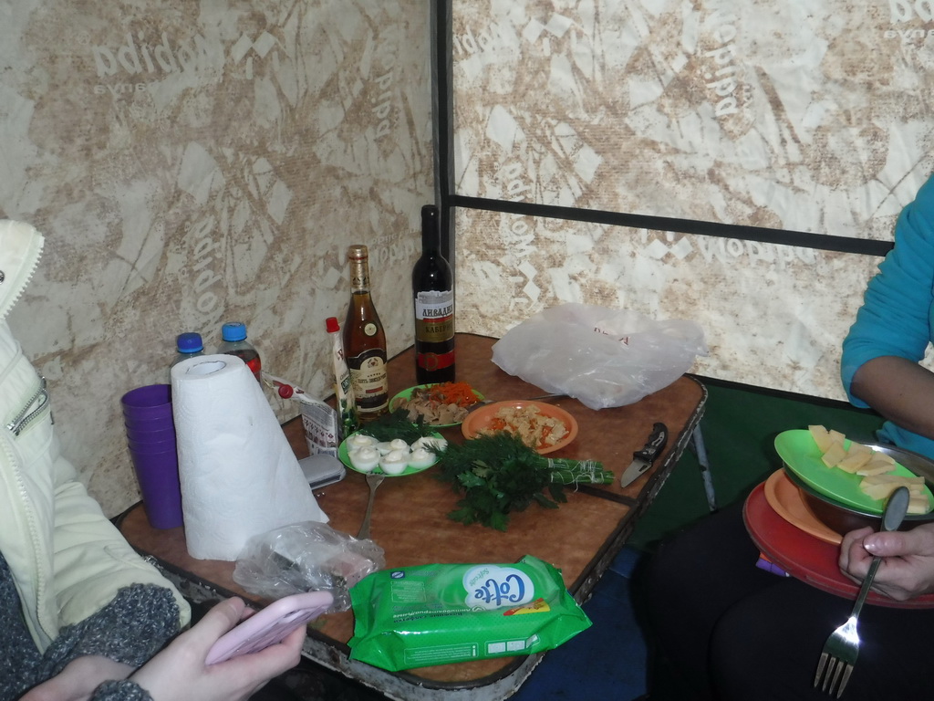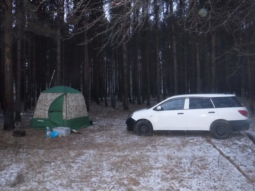 На улице -10..-12, снега ещё мало. Согра в экономичном режиме, в палатке тепло, даже дверь периодически открывали. В очередной раз пожалели, что у нас не аквариум. В остальном всё замечательно.