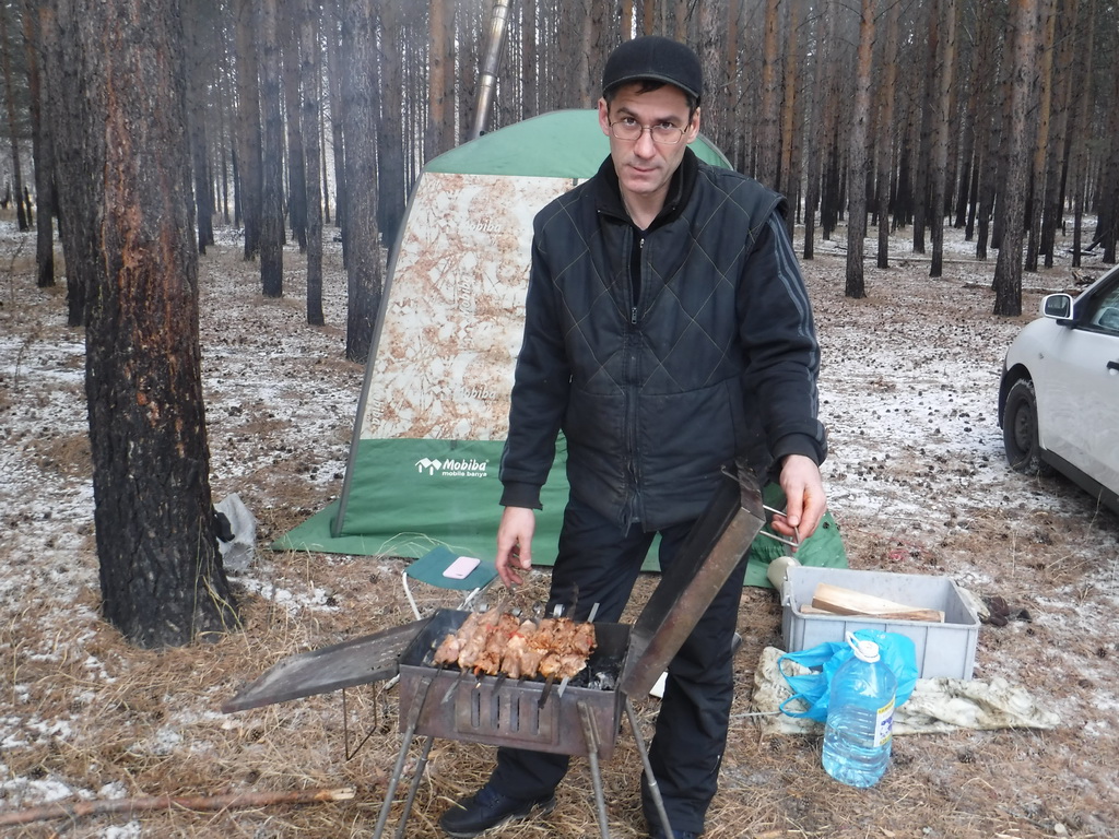 В прошедшую субботу мои девчонки захотели мяса на природе. Баню не захотели, т.к. в пятницу парились у друзей. Спрашивается, зачем тогда брать 104-ю? Взяли десяточку, Согру, Шикардос и в лес. За 10 минут всё поставили, запустили Согру, пожарили мяса на Шикардосе и сидели до темноты.
