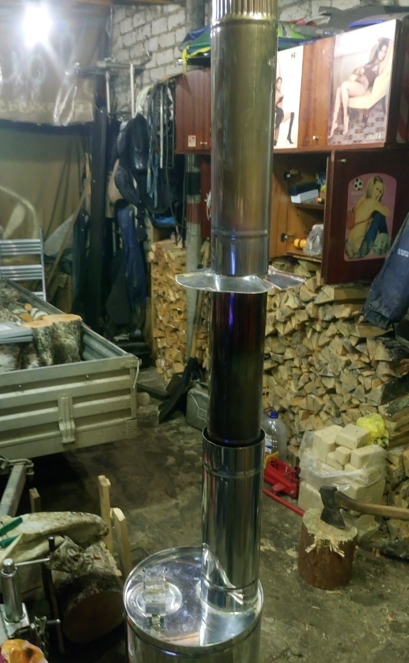 Выйдя из гаража, дабы сотворить некоторый ритуал по удовлетворению малой нужды и, в процессе, посмотрев на звездное небо, я обратил внимание, что "грибок" на печной трубе совсем поистрепался (оцинковка) и требует замены. Доехал до магазина и купил из нержавейки ДВА грибка... Почему два? Сам не знаю. Сижу думаю... Нафига два взял?