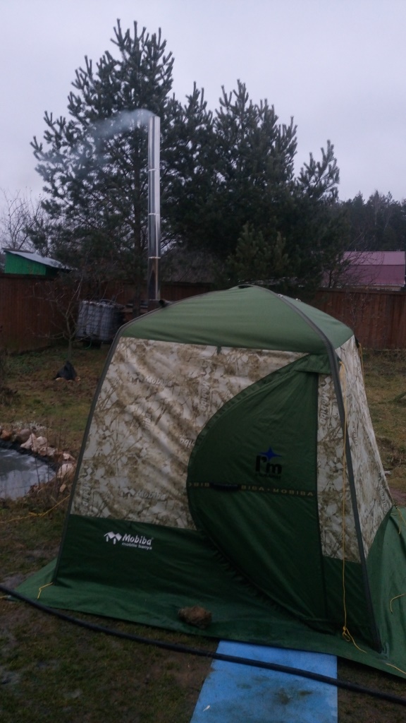 В субботу еще раз обкатал десятку+КЦ-2. Погода была градуса +4. Ставил палатку на травку. Так как земля раскисла, то положил фольгированный изолон, а сверху застелил его искусственным газоном. Получилось уютненько и не скользко). Топил березой. Градусники и психрометры не вешал, ориентировался по собственным ощущениям. Да, ееще на трубу нацепил свой девайс))) из темы "покопавшись в гараже". То ли девайс сработал, то ли звезды так сошлись, но в этот раз банька удалась на славу!