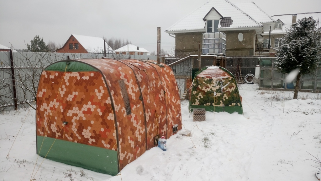 Погода красота! Травка зеленеет, на грядках свежая петрушка! Только ветер сильный был. Ставим 103-ю для обогрева и посиделок (с Согрочкой) и любимую Кайфандрочку. Само-собой Шикардос с бараниной и самовар! Кстати. Если присмотреться, то можно заметить прогары на крыше. С десяток. Последствия использования сухих еловых дров. Здорово стреляют и искрят. Набор хреновин тотже, что и в случае с КЦ-2 за исключением запарника. Рассеиватель универсальный. Что к КЦ-2, что к Жиге. Колосник второй генерации) Топил пиникеями. Хорошая штука.