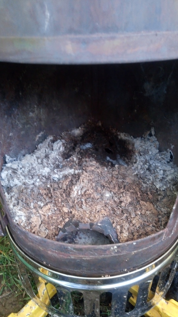 Температура 70-80, влажность 60-45. Это от души и оочень хорошо! При работе вениками, в следсвие перемешивания слоев воздуха, температура падает, что легко компенсируется подачей на камни.Ветра практически нет и температура окружающей баню среды в пределах +3,+5 грд. Удовольствия - море! Из хреновин использовались рассеиватель на парогенератор (второй генерации)), колосник, запарник. Если в трех словах, то: Рассеиватель рассеивает, колосник колоснит, запарник запаривает! В запарник загружались листья эвкалипта. Хорошо, но быстро выпариваются. Приходится часто менять. Но это не особая проблема. Колосник неплохо распределяет воздух. Вот так выглядит полностью прогоревшая и затухшая печь Здесь не очень видно, но на участке с отверстиями золы практически нет, отверстия чистые. Топил березой и немного брикетов. Всё это "безобразие" (только в хорошем смысле слова!) длилось часов пять, потом плавно перетекло в продолжение встречи нового года.....