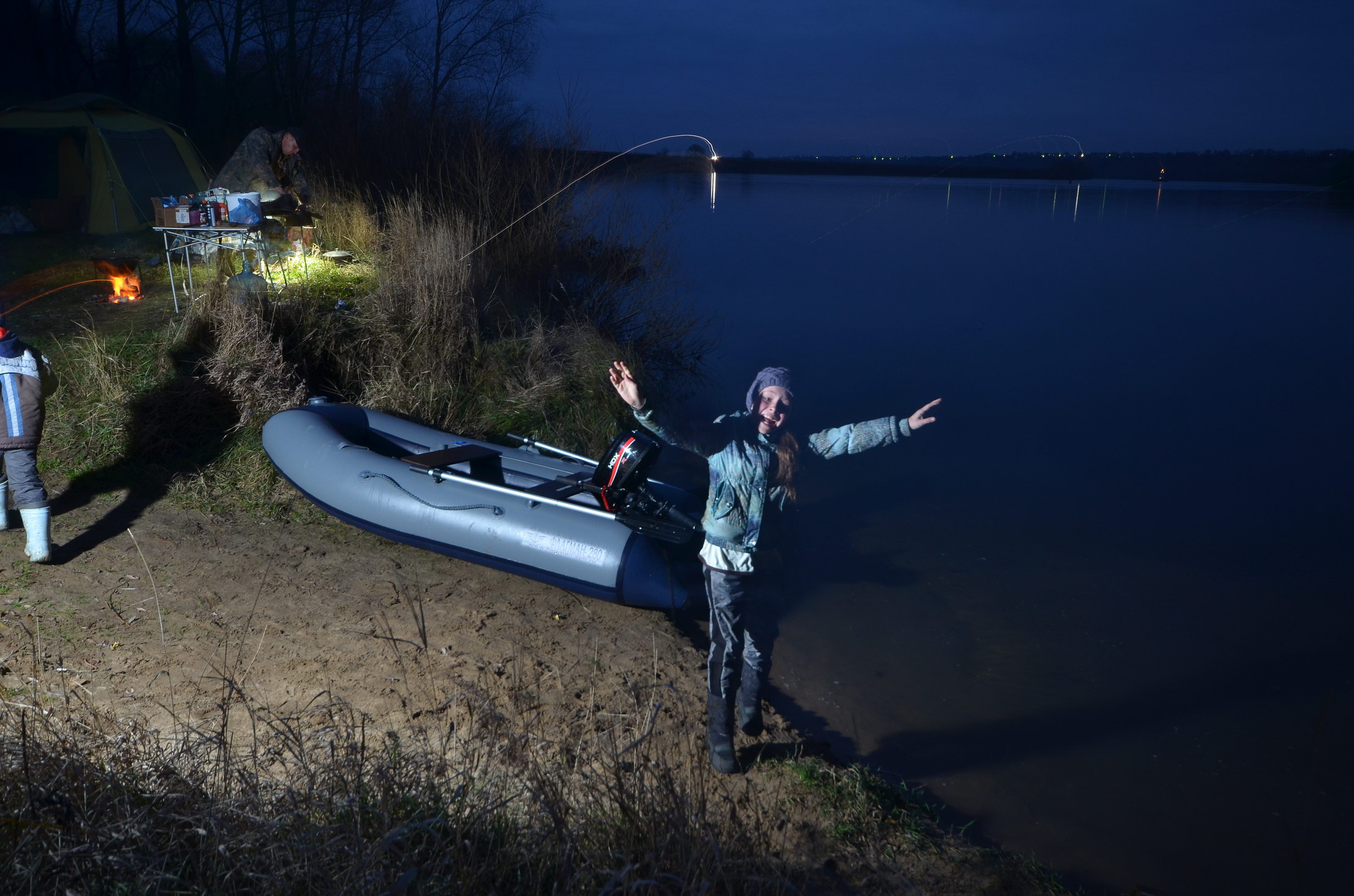 Спустя какое-то время выяснился виновник шутки, который раздал оставшиеся баллончики краски детям, а уж они-то оторвались вволю и творчески раскрасили папе уазик. и уазик дяди Ильи и фургончик дядюшки Мокуса(зачеркнуто) Shmon'a а потом мы стали палить дымовые шашки с красивым, но невкусным дымом. поставили свежекупленную на тот момент по объявлению форума в разделе куплю-продам МБ-332, это было первое парение в сей новой для меня палатке (она и так как новая, хоть и много лет ей!) Та половина лагеря, которую мне можно сейчас опубликовать, выглядела так вот наш Шеф-повар-подрывниктудытьего готовит завтрак а тут готовится грандиозный суп на обед на всю банду после сытного обеда развернули лодку и покатались по ледяной Оке.. Илья, как наиболее трезвый (вы видите его грустные глаза? просто пиво хорошее уже кончилось), вызвался в капитаны и лоцманы одновременно. А я? Я конечно тоже трезвый, но в это время уже увлеченно парился, отвлекшись только схватить фотоаппарат для фотографии Потом, пока не стерли все надписи с машин пошли фотографироваться всем табором