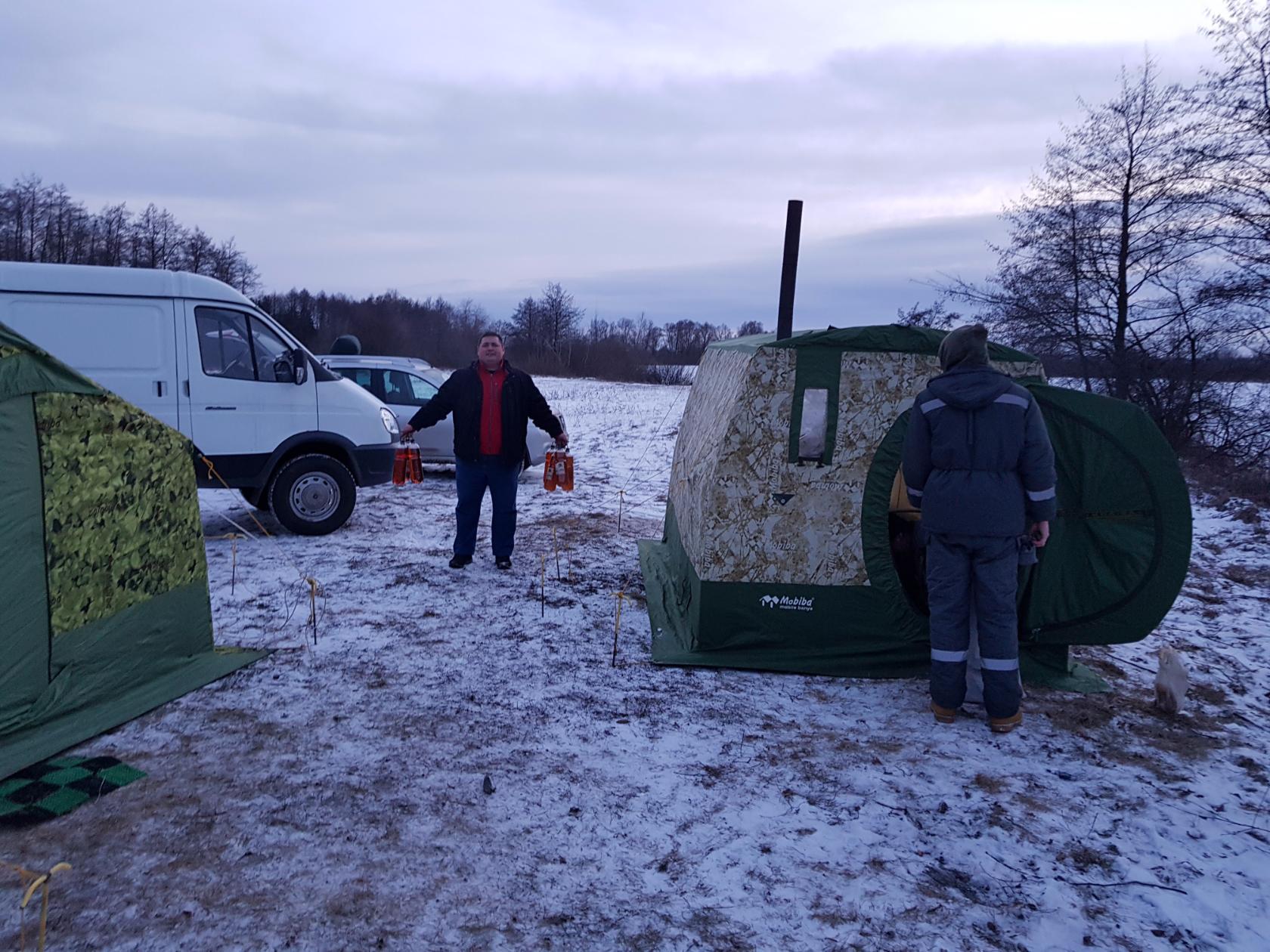 Р34 очень понравилась. Двухслойная отапливаемая палатка всесезонная. Позволила комфортно расположить 4 кровати. Печь Игорь доработал конструкции для сушки обуви и вещей, на которой расположил вентиляторы, обеспечивающие равномерный обогрев палатки. Утепленные полы отлично удерживали тепло. В окошко можно было созерцать, что творится возле палатки. Рано утром собирались на рыбалку. Но вылезать из спальника не хотелось совершенно. Медленно проваливаюсь в сон. Но потом, кто-нибудь просыпался и кричал, ну что на рыбалку идем? А вокруг уже вовсю были слышны бурения лунок. И слышно было, как проходящие рыбаки мимо останавливались и разглядывали наш лагерь, переговариваюсь друг с другом. Некоторые думали, что мы рыбнадзор, ведь действует запрет на ловлю щуки у нас в регионе.