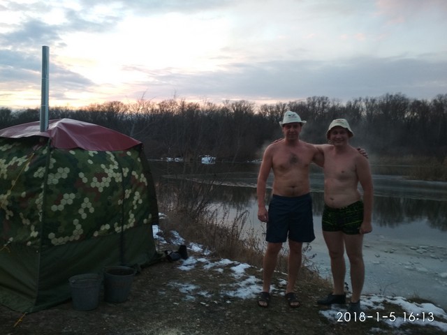 Ну, вот мы и на месте, точнее, приехали к друзьям в Пески. В добавок к руфам взяли дубовых дров – это уже проверенное топливо. Решили ехать опять на то же место. Но когда мы доехали до реки Хопер, то увидели, что мост затопило, и река у берегов затянута толстым слоем льда. К слову о погоде, до 4-го января стояла плюсовая температура, шли дожди. И вот на 4-е выпал небольшой снежок, ударил мороз до 15 градусов. Сегодня 5-е января, термометр показывает 10 градусов мороза, светит солнышко, по которому мы очень соскучились (за весь декабрь только два раза ненадолго выглядывало из-за затяжных облаков).