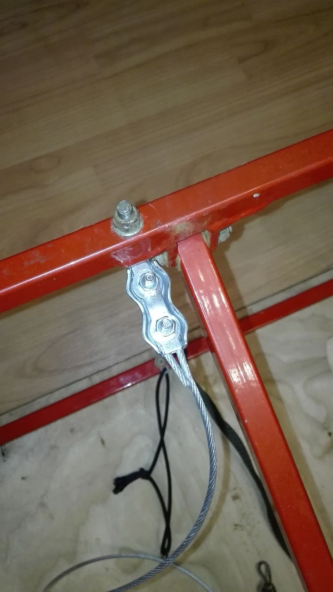 Вот и меня постигла участь остаться без полка в ответственный момент, когда 3 взрослых и 2 детей уселись на него. А всему виной ржавый тросик в районе болта крепления. Я его заменил на 3х миллиметровый тросик с покрытием. Надеюсь надолго хватит.