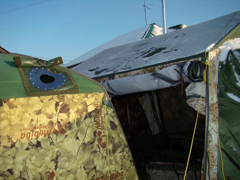 И при этом – изделие отапливается «Согрой!» Выглядит это так: В общем, концепция такова. При использовании ВП-33 мы получаем лагерь под одной крышей, выходить из которого придется только для макания в водоем/прорубь, а все остальное можно делать внутри. Как сказал А. Н. Рублев при получении мной изделия, «в подводной лодке только один вход». Собственно, именно в этих словах вся концепция и отражена.