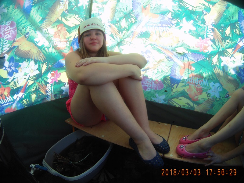 Паримся несколько часов. Хорошо, плотно. Ловить максимумы температур на Жиге получается всё лучше и лучше. Выскакиваем, обтираемся снегом, падаем в снег. Его у нас много. Заливаем в бак воду из-под веников, не фильтруем её никак, но следим, что вода чистая, без инородных частиц. Пьём квас.