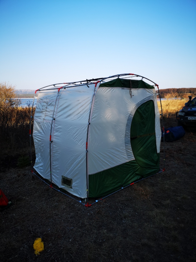 Внешний тент. Одели вдвоём, тоже всё ясно-понятно.