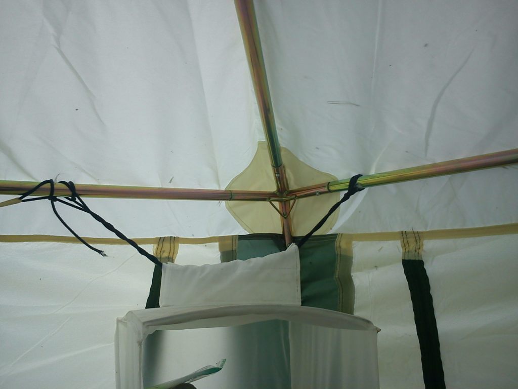 имеющий самый тяжёлый и прочный каркас. Трубы между собой были не соединены, но что бы не запутаться были разного диаметра или длинны. Уже не помню. У современных надёжных шатров ( как пример тент-шатер Veranda Comfort v.2)