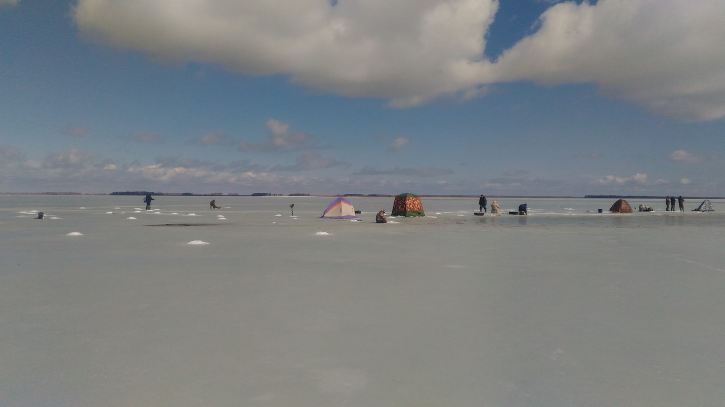Клев был по началу не ахти. За весь световой день выдрал я пяток карасиков с ладошку-полторы. Ветрище был сильный. Определив для себя наиболее веселый рельеф дна и решил поставить МБ-10 на лед, ну а чего морду лица обветривать зазря, да к тому же, как оказалось на данном месте клюет только ночью...