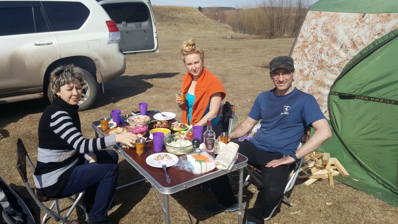 Зима ушла, но льдины по реке ещё плывут. Лучшее время для мобибийцев - на берегах никого нет, да и выбор мест для стоянки обширен. На День рождения друга мы взяли десяточку и двинули в Бельск, старинное русское село, где сливаются Большая и Малая Белые реки. Летом встать здесь невозможно - масса отдыхающих, а в апреле легко. Отдыхали целый день, Впервые попробовали приготовить козлятину на Шикардосе, получилось неплохо, не пересушили. На простом мангале, думаю, не получились бы.