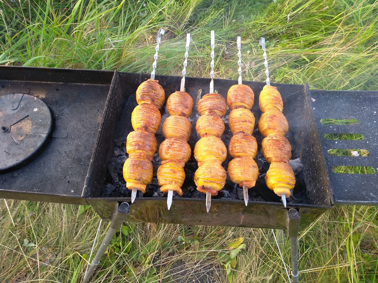 Такая картошечка исключительно великолепно готовится на Шикардосе, у кого его нет, непременно обзаведитесь им. Чрезвычайно продуманное и удобнейшее изделие! Вероятно это от того что и сами создатели его любят и умеют готовить на углях всякие вкусняшки. В профильных темах куча рецептов и вариантов применения.