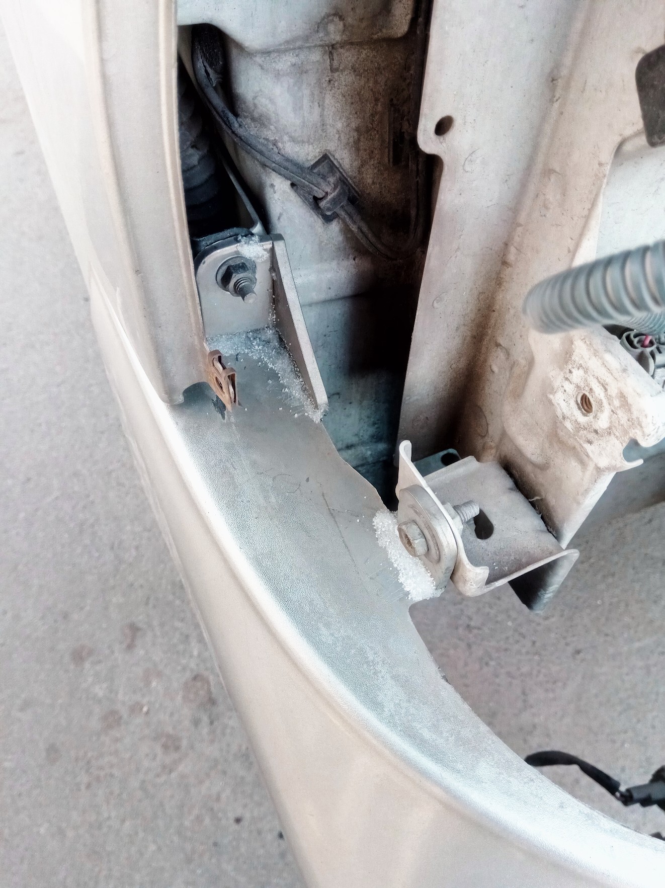 Не знаю, дай бог не пригодится но тем не менее решил поделиться опытом в ремонте пластика, на примере бампера в данном случае, а так что я только не ремОнтировал таким способом, теже расчёски у которых ручки тонкие после ремонта если и сломаются, то не в том месте где их заклеили. Суть такова- место склеивания естественно обезжириваем, после наносим любой но желательно самый дешёвый суперклей, на одну из поверхностей, вторую прикладываем к первой, проходим клеем чтоб был слой жидкого клея между склеиваемых поверхностей и самое главное не забываем ... ПОСОЛИТЬ, да, да, желательно самой мелкой солью, видя что соль впитала клей поливаем ещё и опять СОЛИМ)), суть в том чтоб соль была клеем пропитана. После высыхания можно лишнее удалить напильником, наждачкой и тд. На фото зимой рюхнулся в снег и сломал два уха у бампера, после такого ремонта я два раза в лесу пробороздил бампером по земле довольно жёстко, крепёж не отвалился. Обращаю Ваше внимание что склеиваемые поверхности небольшие, но тем не менее ударную нагрузку выдержали.