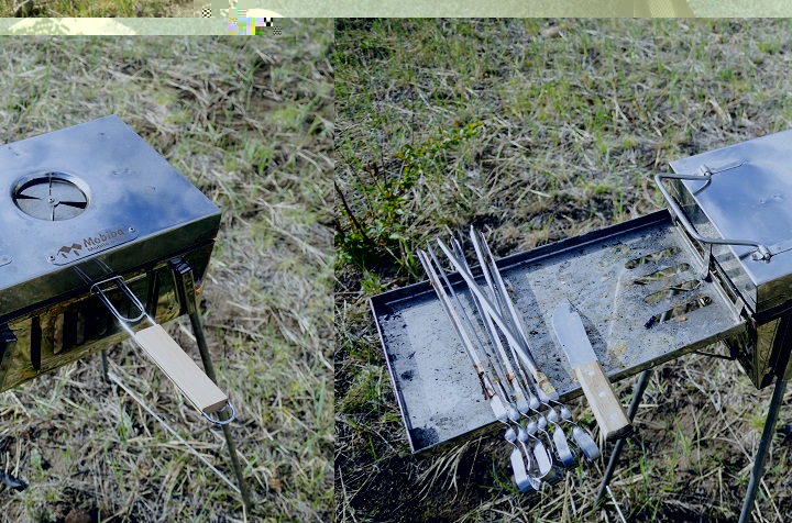 По приезду ставим столик, разжигаем уголь: