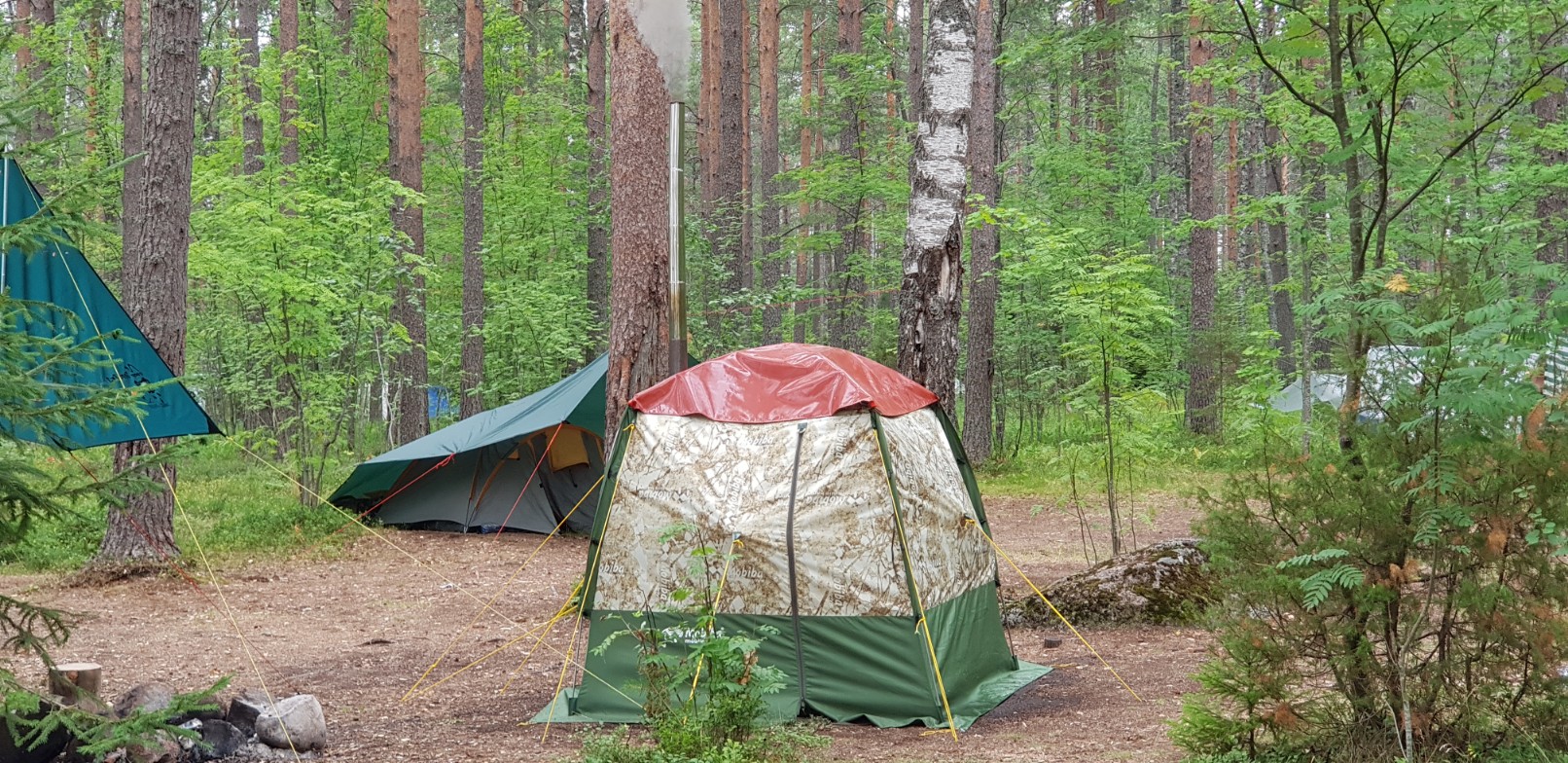 Потом стало понятно, что детей нужно мыть, посуду, пелёнки стирать… Был вариант взять водогрейный бак на 35 литров с дачи. Но он слишком большой и не решает вопрос помещения. Стал задумываться о приобретении/шитье походной бани. В сторону мобибы сначала не смотрел по причине дороговизны предыдущих изделий (интересовался раньше). Смотрел на примитивные варианты, думал сделать разделку… Потом наткнулся на известных здесь конкурентов, но всё равно решения громоздкие и дорогие… И вот, просмотрев ещё раз сайт Мобиба, вижу нечто новое: палатка вместе с печкой менее 20000 руб, и самое главное по массе чуть больше 10 кг! Это интересно! Почитал форум, посмотрел картинки… но всё равно сумма приличная. Сомневался некоторое время. Но потом поговорил с другом, который организует коммерческие походы, в том числе на зимний Байкал, и он сказал что у него как раз Кайфандра, которая всем понравилась. Поговорил с участницей похода, она подтвердила что отлично помылась на байкальском льду при -20 за бортом и было совсем не холодно, даже ногам. Убедили, нужно брать. Через день заказал и к следуюшим выходным баня была уже готова к испытаниям.