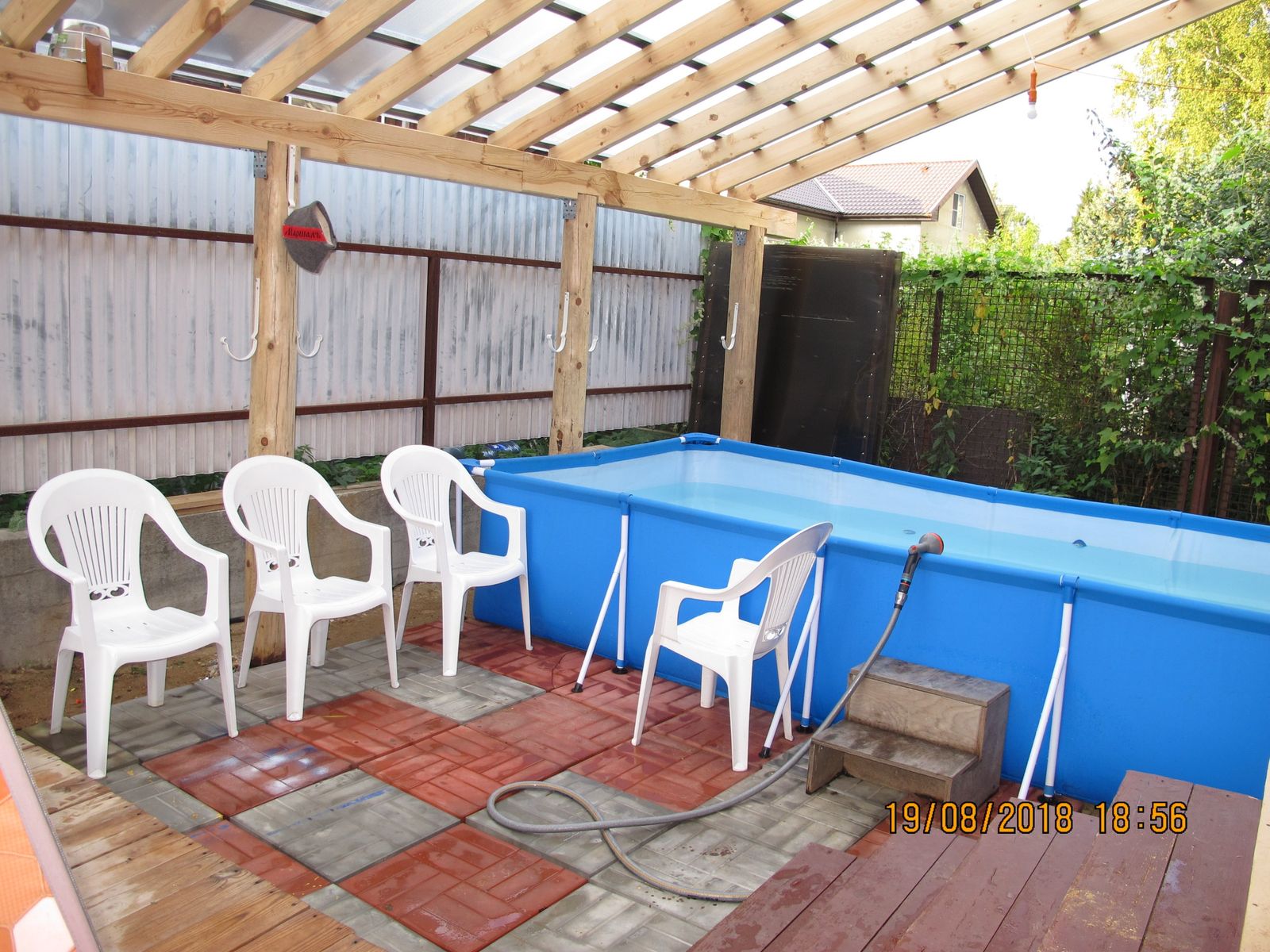 Сейчас сделал навес из поликарбоната около бани, поставил под него мобибу, получилось хорошее место отдыха после бани