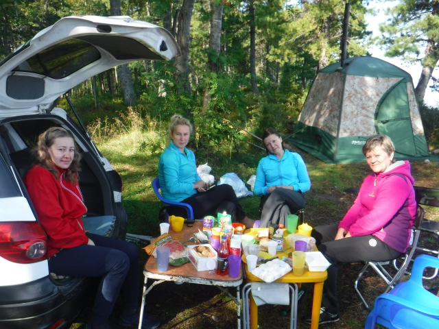 Мы прибыли на место первые к обеду, чтобы найти большую поляну для лагеря на такое количество народа, остальные подтянулись к ночи - у всех работа.