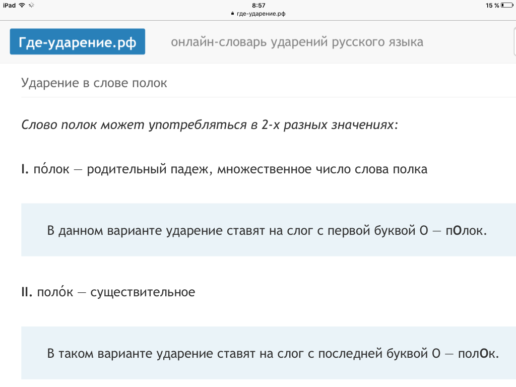 Все нюансы подмечены правильно. Только не "пОлок", а "полОк")))