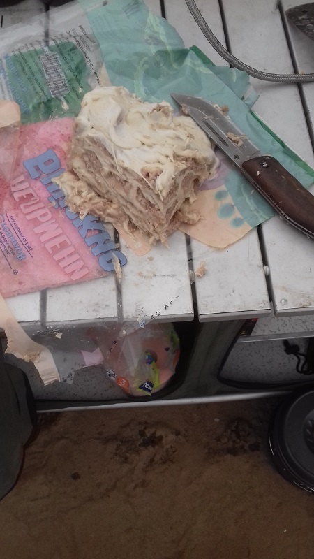 Предыстория. Крайняя рабочая поездка радио "Таёжная жизнь" - обеспечение рыбалки. Поскольку лично я с рыбалкой не совмещаюсь никак, то пока провиантская команда под предводительством Ивана Радостева рыбачит рыбу, я занимаюсь лагерем, сочинением хокку, изучением медвежьих следов, обильно покрывающих косу, на которой мы стоим и прочими бытовыми вопросами. Рыбалка многодневная, а у мужиков не клюет от слова "совсем", в связи с чем настроение не самое лучшее, а значит, аппетит тоже не блещет. В результате от пары предыдущих дней остается куча готовых, но неиспользованных продуктов, которые и домой везти незачем, и выкинуть жалко. Пропасть-то они не пропадут: на улице стабильный ноль, как в холодильнике, но не везти же их обратно?