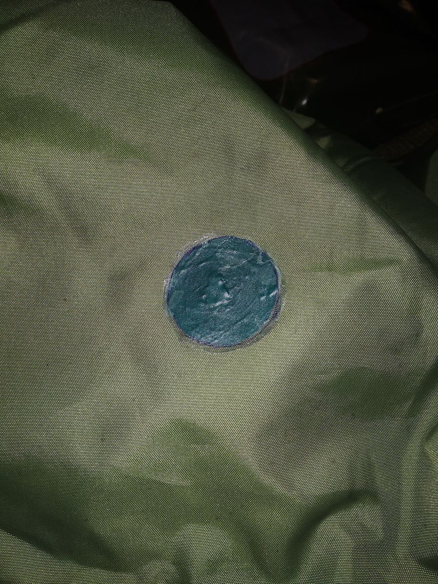 т.е. она заходит на края заплатки , по соотношению цена- объём она выигрывает в разы у любого клея,) если какие объёмы герметизировать большие самое то, мне осталось швы ей пройтись, хоть и не протекает тент, но так для самоуспокоения) , в моём случае она больше подходит, да и чтоб всю банку не таскать перелил немного в меньший объём, чтоб если что, в полевых условиях произвести необходимый ремонт.