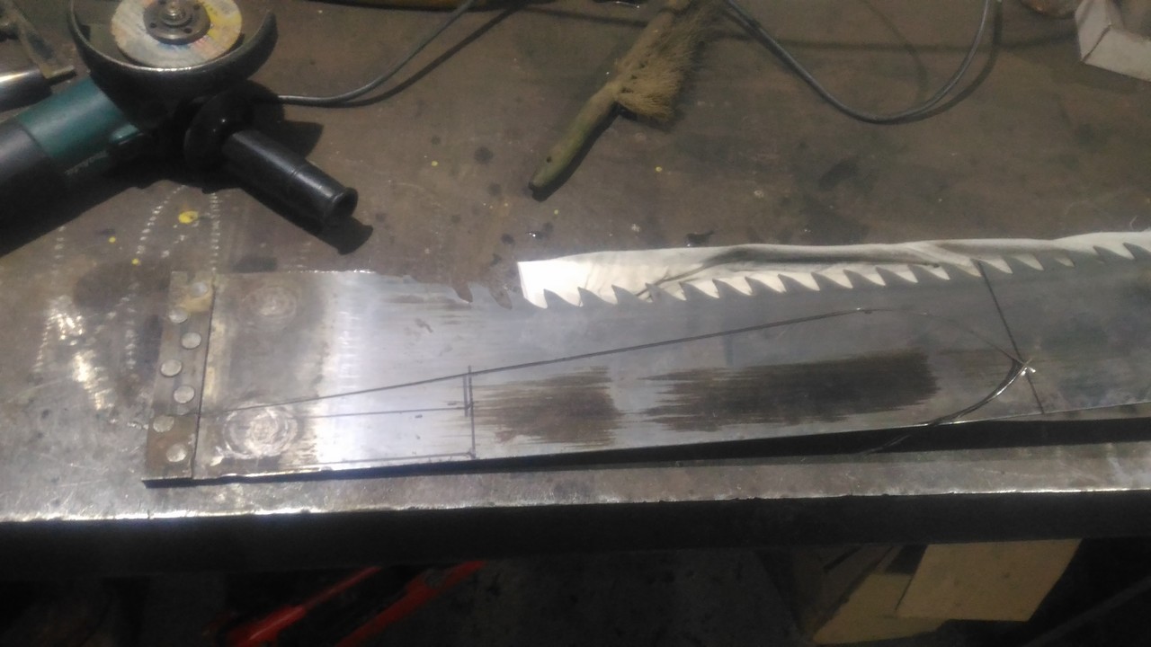 Вдохновившись постом Юрия, запал мне в душу тесак Соколова. Заказал в поиск необходимую пилу. Кое как нашли где то на дикой пилораме кусок полотна. И вот сегодня наконец то решил смастерить мачете... Давно мечтал.