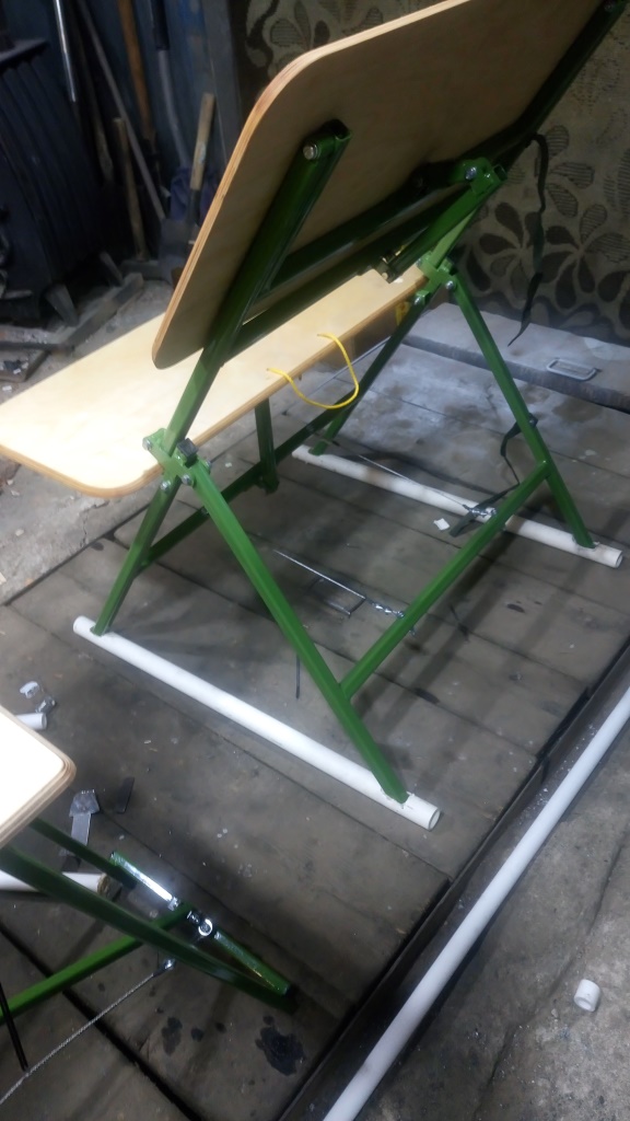 Ну а полоки надо немного пофэншуить. Сами полоки - красота и загляденье! На мой взгляд тросики из нержи! А на ПСН-700 трехмиллиметровый!! Обработал их маслом для полоков и пристроил ножки. Для защиты ПУ. На ПС-2 просто взял 32-ю трубу и вырезал отверстия под ножки. А на ПСН-700 по проверенной технологии из 25-й трубы и тройников. Только сверху 25-й одел еще 32-ю) Получилось практически ровная подставка)